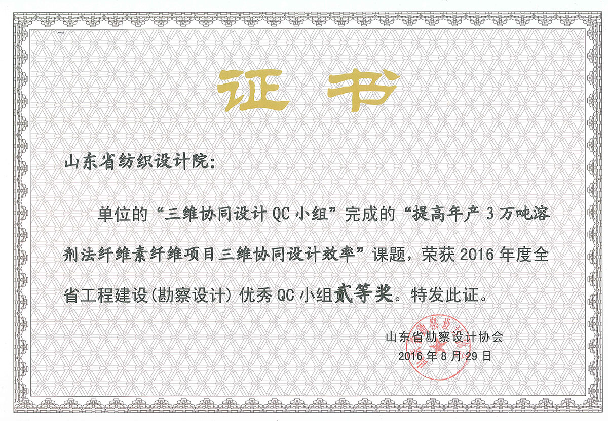 山東省紡織工業(yè)設(shè)計(jì)院榮獲二等獎(jiǎng)