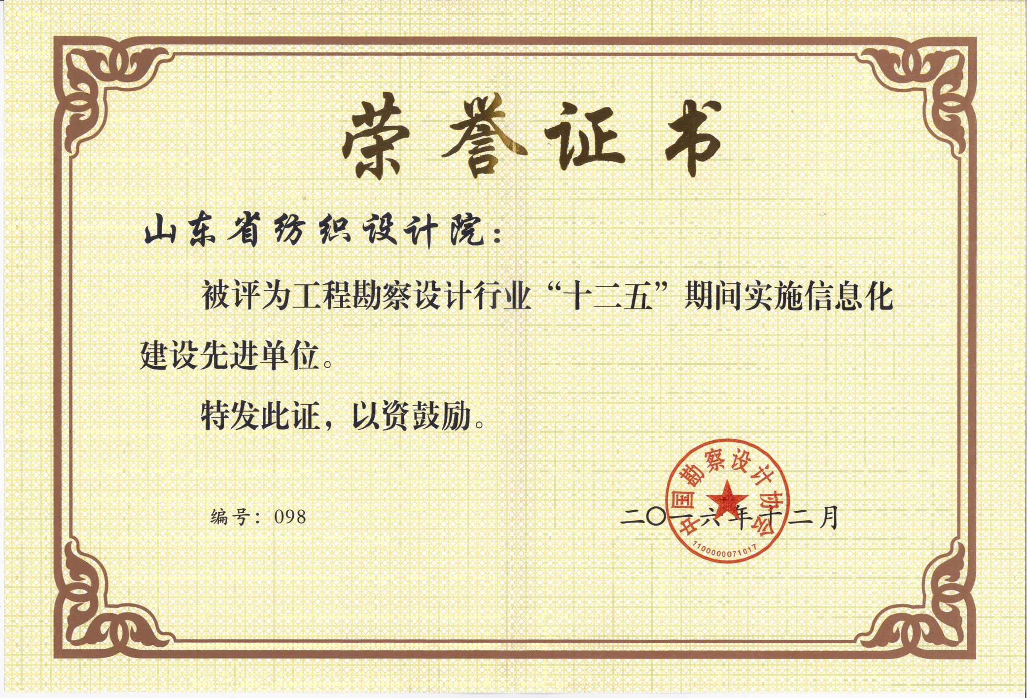 十二五期間實(shí)施信息化建設(shè)先進(jìn)單位