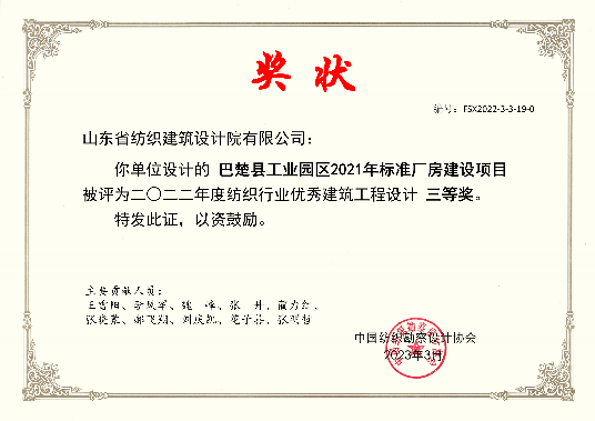 2022年紡織行業(yè)優(yōu)秀建筑設(shè)計(jì)三等獎(jiǎng)