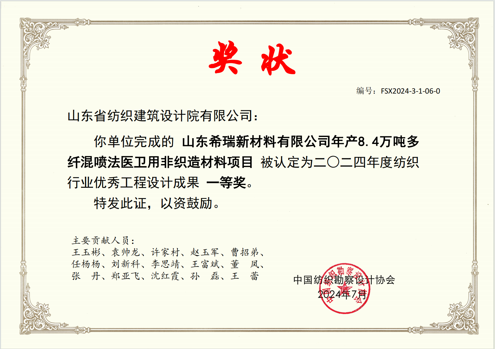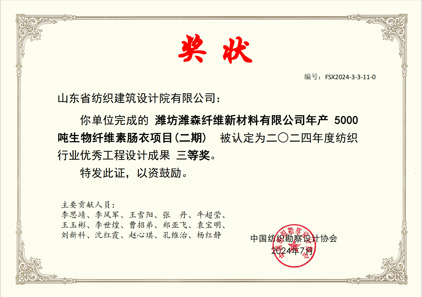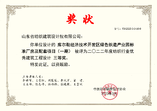 2024紡織行業(yè)優(yōu)秀工程設(shè)計(jì)成果三等獎(jiǎng)