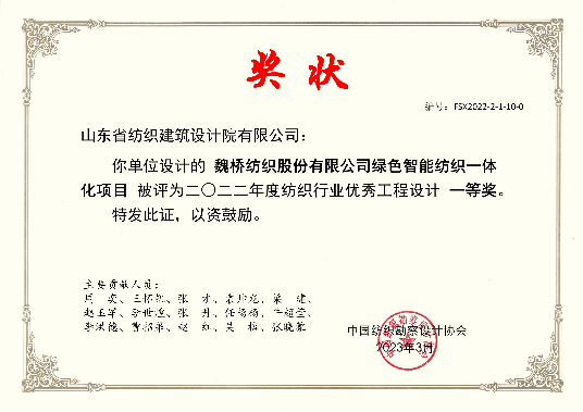 2022年紡織優(yōu)秀工程設(shè)計(jì)一等獎(jiǎng)