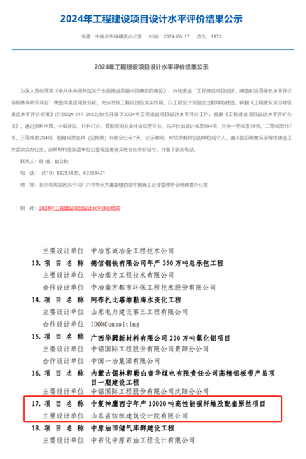 喜訊 | 山紡設(shè)計院榮獲2024年度中國工程建設(shè)項目設(shè)計水平評價二等獎