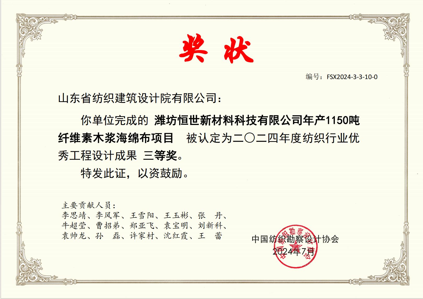2024紡織行業(yè)優(yōu)秀工程設(shè)計(jì)成果三等獎(jiǎng)