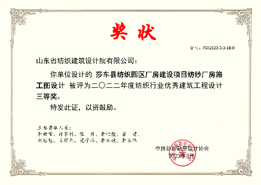 2022年紡織行業(yè)優(yōu)秀建筑工程設(shè)計(jì)三等獎(jiǎng)
